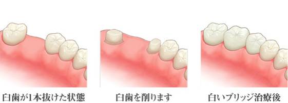 ブリッジ治療は健康な両サイドの歯を削らなければならない事が最大の欠点です。