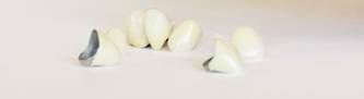 超微粒子のセラミックとレジンを混ぜ合わせた新素材でつくるものです。 セラミックのような色調と硬さ、レジンの折れにくさを併せ持っていますが、審美性、耐久性はやや劣ります。